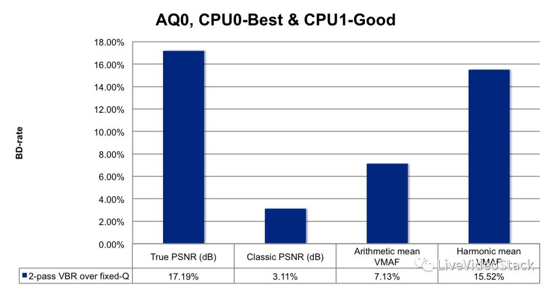 图13:VP9-libvpx中2-pass VBR/ fixed-QP的BD率损失(2016年10月,Netflix的“Open House on Royalty Free Codecs”的节选,“VP9 Encoding Opportunities @ Netflix”演示文稿)
