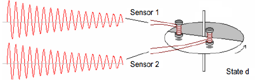 无磁检测是通过两个LC 振荡电路来实现的,下图列出了表盘转动过程中对应LC振荡的正弦波衰减变化过程图。