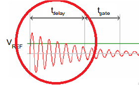 2,延时:在刚充电到一段时间内,正弦波衰减是很缓慢的,这时候需要一段延时,等待有规律的衰减期到来,这段延时是根据LC参数及电感涡流大小来调整的,需要通过实验测试得到合适的值。