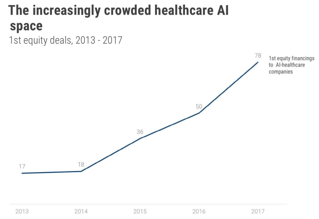 医疗依旧是人工智能创投最热门的领域之一,许多专注于医疗影像及诊断公司的不断成长促成了这一结果。