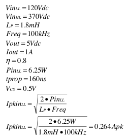 方程式 1 计算实际峰值主电流: