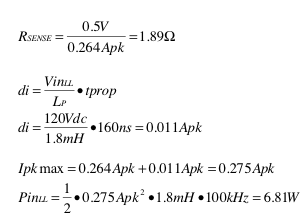 结果是输入和输出功率随着输入线路电压的增大而增大。可举例说明这一问题。峰值主电流(方程式 4)能根据如下系统要求得出: