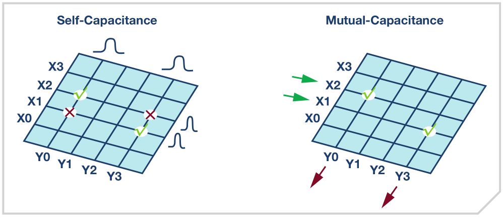 在触摸屏应用中,互容屏更受欢迎一些,原因是与自容屏相比,互容屏可以真正意义上支持多点触控。