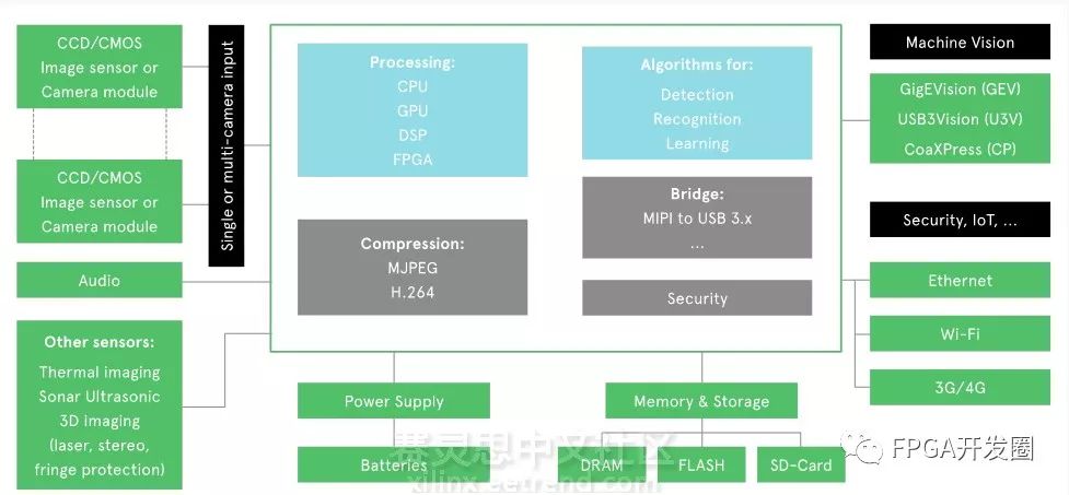 作为系统的输入CMOS和CCD是目前图像采集采用的两种领先技术,CCD能够提供更高的图像质量,但是经过过去10年的发展CMOS与其的差距也越来越小了,在功耗、成本和功耗方面大有超过CCD之势。此外很多应用都需要高效的并行处理系统,因此需要采用专用的硬件处理器比如GPU、DSP、FPGA和多核(multi-core)SoC,但是这无疑会增加系统的成本、功耗和PCB尺寸等,因此一款经济高效的处理器也是行业所需。当然在实际应用中我们要根据系统的实时性能、功耗、图像精度和算法复杂度来选择合适的处理器。