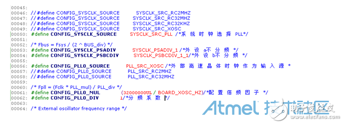 在系统时钟模块中的配置文件conf_clock.h中定义宏定义: