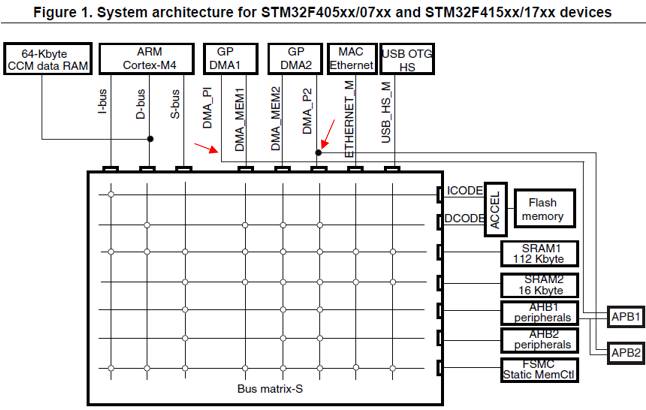咨询者的问题基本上靠看上面几幅图可以得到答案。这些图很重要,很多信息用图描述也很直观明了。各技术手册里的插图往往大有乾坤,不要视而不见。上面提到的都是基于STM32F4系列的总线架构,你也可以去看看其它系列的系统总线框图,相信你一定会另有发现和收获。