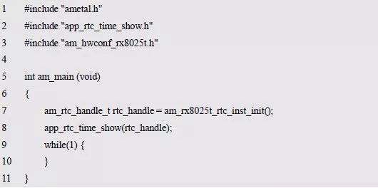 程序清单6.73 新增RX8025T 的RTC 实例初始化函数(am_hwconf_rx8025t.c)