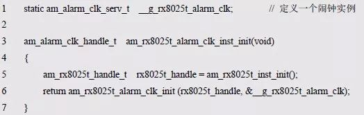 程序清单6.76 新增RX8025T 的闹钟实例初始化函数(am_hwconf_rx8025t.c)