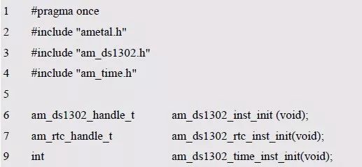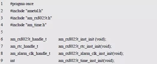 程序清单6.72 实例初始化函数声明(am_hwconf_rx8025t.h)