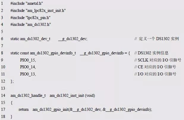 程序清单6.85 实例初始化函数实现(am_hwconf_ds1302.c)