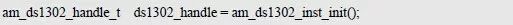 DS1302 的初始化函数am_ds1302_gpio_init()的返回值,作为实参传递给其它功能接口函数的第一个参数(handle)。am_ds1302_handle_t 类型的定义(am_ds1302.h)如下:
