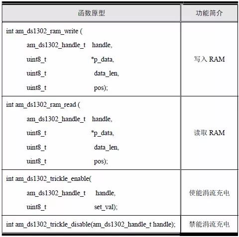 表6.16 DS1302 特殊功能控制接口(am_ds1302.h)