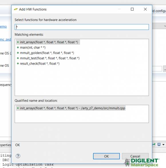 Add HW Function界面 – 显示可以用于加速的函数: