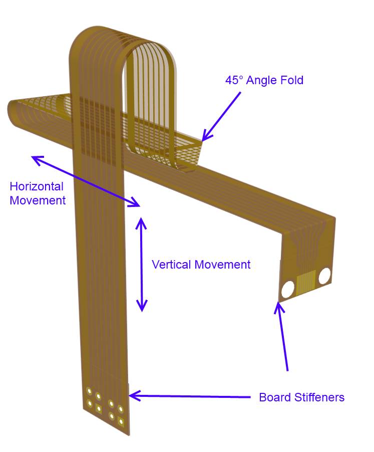 在这个案例中,这个折痕是适合的,因为柔性电路的这部分将固定在大型刚性的机械体上,因此不会产生过度损耗。