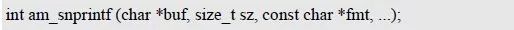 其中,am_snprintf()与标准C 函数snprintf()函数功能相同,均用于格式化字符串到指定的缓冲区中,其函数原型为(am_vdebug.h):