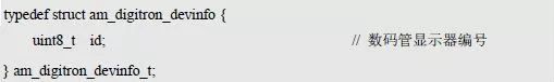 其中,devinfo 是标准数码管设备的信息,其仅包含显示器ID 号,其类型定义(am_digitron_dev.h)如下: