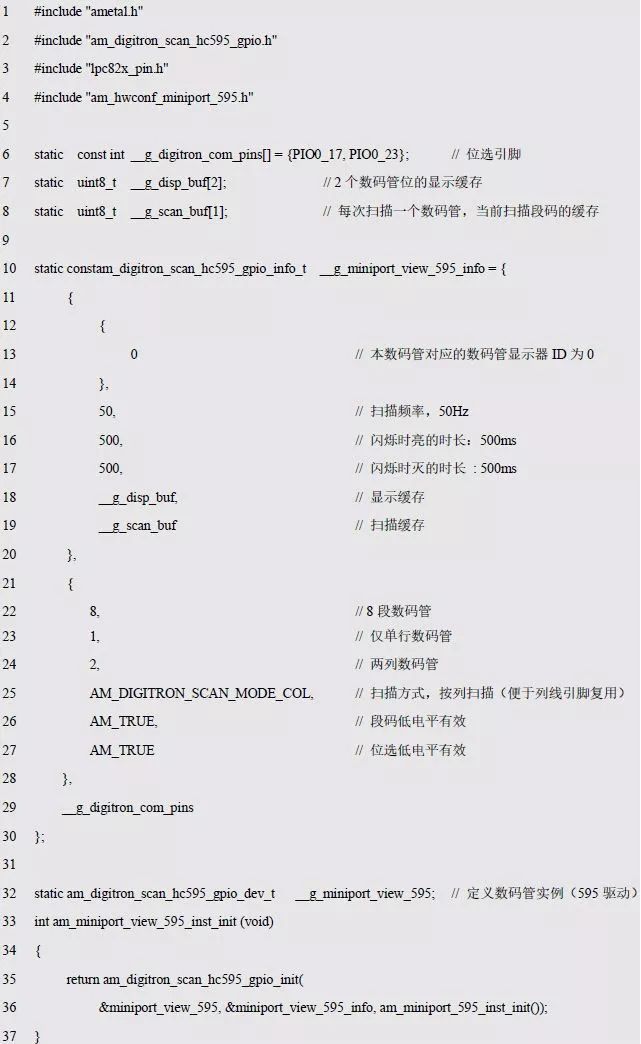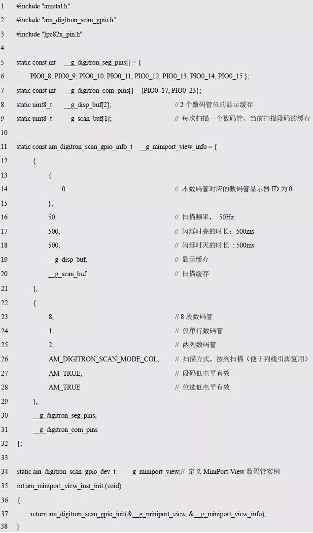 程序清单7.49 数码管实例初始化函数实现(am_hwconf_miniport_view.c)