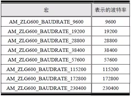 表6.23 支持的UART 波特率对应的宏(am_zlg600.h)