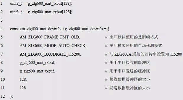 定义am_zlg600_uart_dev_t 类型(am_zlg600.h)实例如下: