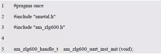 程序清单6.99 ZLG600A(串口通信)实例初始化函数声明(am_hwconf_zlg600.h)