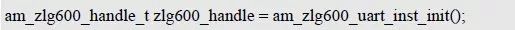 ZLG600A 初始化函数am_zlg600_uart_init()的返回值即为ZLG600A 实例的句柄,该句柄将作为其它功能接口的第一个参数(handle)的实参。