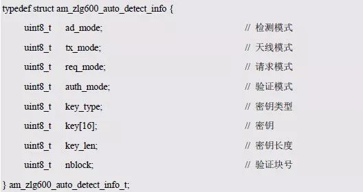 该信息结构体包含了天线驱动模式、卡片唯一序列号和读取的数据等相关的信息。