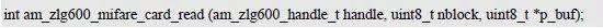 如果需要读取数据,则必须将auth_mode 置为AM_ZLG600_MIFARE_CARD_AUTH_E2或AM_ZLG600_MIFARE_CARD_AUTH_DIRECT,其主要区别是验证密钥存放位置不同。