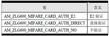 所谓密钥验证就是将用户提供的密钥与卡片内部存储的密钥对比,只有相等方能验证成功。auth_mode 指定了3 种验证模式,其对应的宏表6.29。