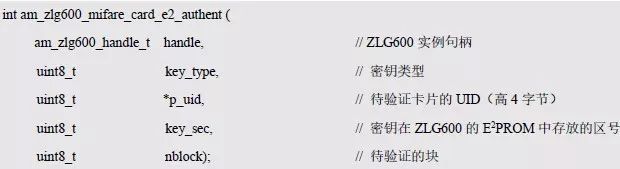 用于验证的密钥是存放在ZLG600A 的E2PROM 中,其函数原型为: