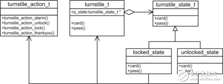 这是一种良好的设计,因为动作接口优雅地解除了FSM的状态变换逻辑和它要执行的动作之间的耦合。这样一来就算另外一个具有完全不同逻辑的FSM,也可以在没有任何影响的情况下使用这些动作接口。
