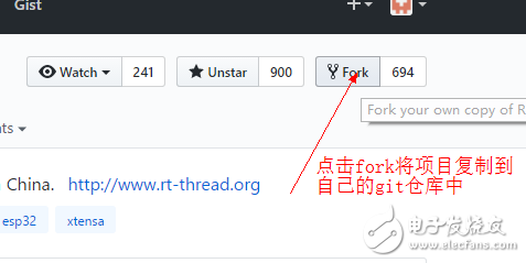 1. fork将rt-thread仓库fork到自己的git仓库中。