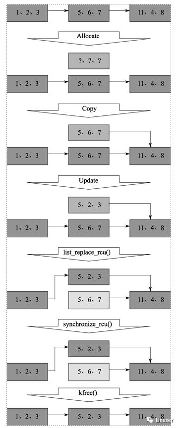 不过尽管RCU是因替换的例子而得名的,但是RCU在内核中的主要用途还是用于简单的删除。