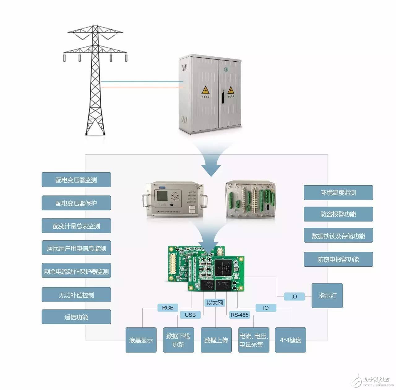 下图为ZLG致远电子基于工控核心板在智能配变终端中的应用实例: