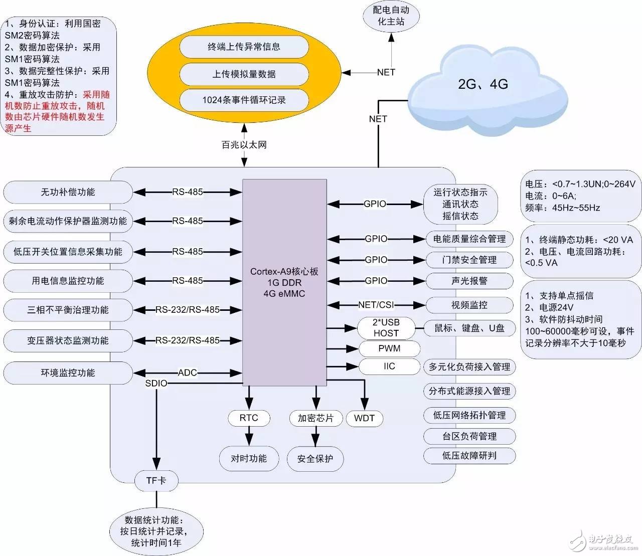 具备较强计算、存储能力,能方便的添加新业务功能。CPU应为双核,主频应在600MHz以上,内存应在512M以上,FLASH应在1G以上,均为工业级芯片。