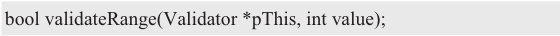 中的“void *pThis”转换为“Validator *pThis”,validatrRange()函数原型进化为: