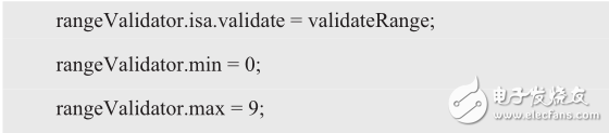 其中,validateRange为范围值校验器函数名,使用方法如下: