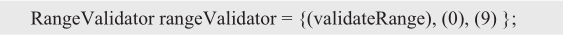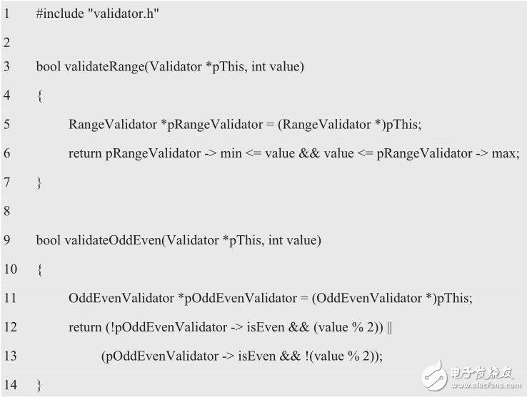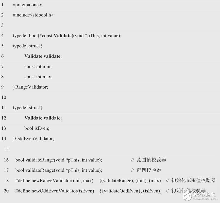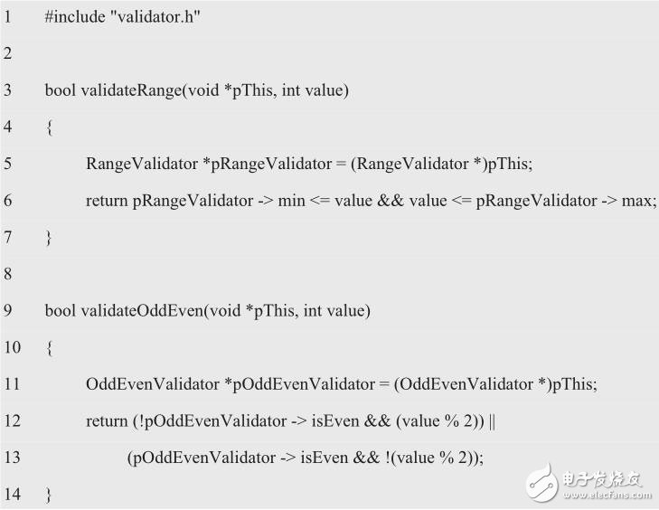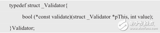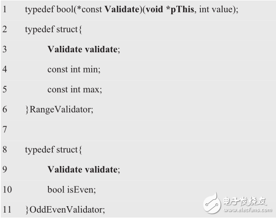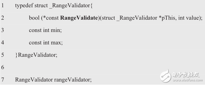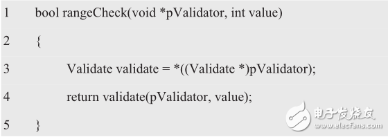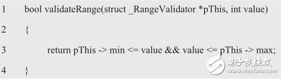 这就是范型编程,校验器泛化接口的实现详见程序清单 2.22。由于pRangeValidator与pThis的类型不同,因此必须对pThis指针强制类型转换才能引用相应结构体的成员。