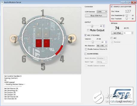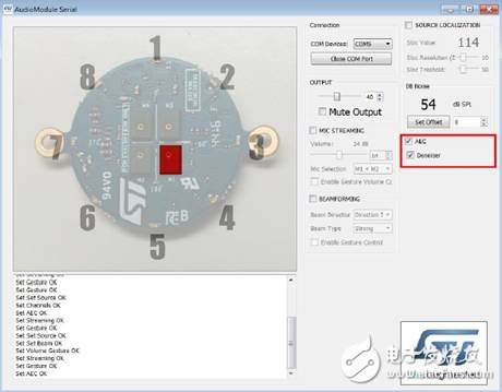 3.打开FP-AUD-SMARTMIC1 GUI软件,位于UtilitiesPC_SoftwareControl_SW_Executable,选择COM端口打开,即可使用FP-AUD-SMARTMIC1的相关功能了。