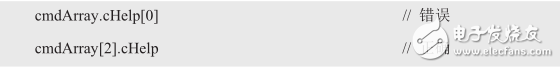 使用cmdArray[2].cHelp的原因是:cmdArray[2]是结构体变量名,正如cmdArray[1]是一个结构体变量名。使用cmdArray[3].cHelp的原因是cmdArray[3]是结构体变量名,如同cmdArray[0]是另一个变量名。由于数组变量名代表数组首元素的地址,因此下面两个语句是等价的: