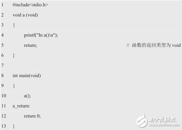 C语言通过硬件栈保存函数的返回地址,被调用函数将返回地址出栈到程序计数器PC中,以返回到调用点,其示例代码详见程序清单2.29。
