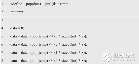 如果出栈数据data的长度大于sizeof(int),则需要多次出栈后拼接数据,其拼接的顺序为入栈的反序。如果入栈的顺序为先低位后高位,详见程序清单 2.28。