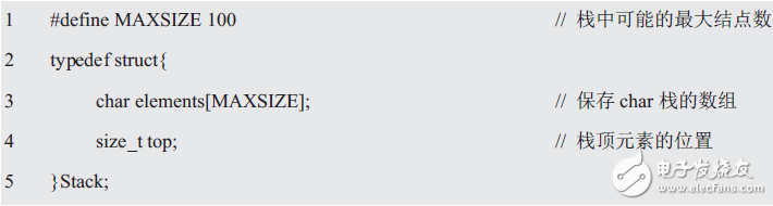 假设需要一个字符栈,且栈的大小是固定的,即可使用数组保存栈中的元素,然后指定一个计数器表明栈中元素的数量。其数据结构定义如下: