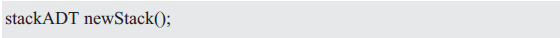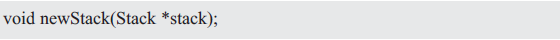 由于用户完全不知道底层是如何表示的,因此必须提供一个用于创建一个新stackADT的函数,且将它返回给用户。用于创建一个新的抽象类型的值的函数名称以new开始,以强调动态分配。其函数原型如下: