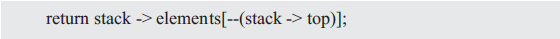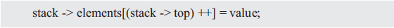 实际上,当定义了一个结构体指针变量stack后,(stack->top)就成为了一个变量,即可通过stack->top与stack->elements[stack->top++]分别实现对stack的各成员的访问。显然程序暴露了“数组和下标”这一内部结构,且无法阻止用户使用stack指针变量直接访问结构体的成员。比如:
