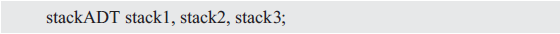显而易见,stackADT是代表stack1、stack2、stack3等所有具体栈的总称的抽象数据类型,stack1、stack2和stack3分别指向不同的栈。因此只要将stack1、stack2和stack3作为实参传递给相应的函数,即可访问与之相应的栈。而抽象的方法是在栈的实现代码和使用栈的代码之间添加一个函数层。比如:
