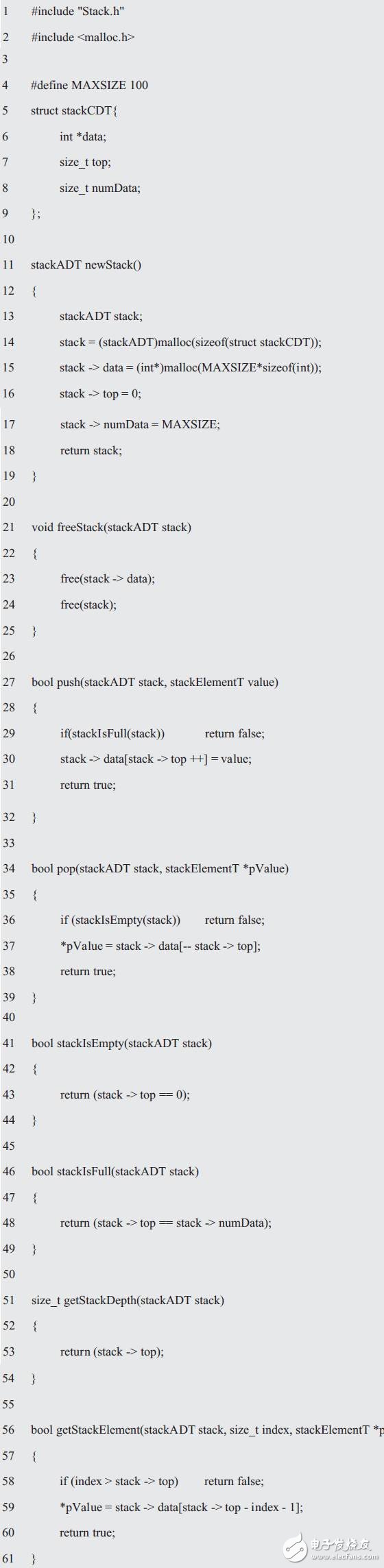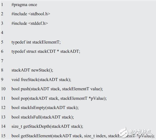 这些函数共同创建了接口,每个函数都以stackADT作为它的第一个参数。当声明了函数接口后,即可实现相应的接口。