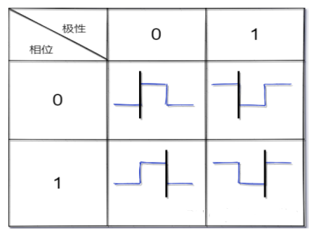 SPI有四种工作模式,取决于相位(CPHL)和极性(CPOL)两个因素。CPOL表示时钟线在空闲时候的状态