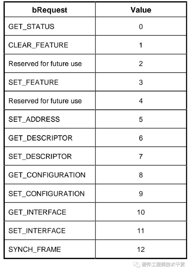 以下是描述符类型列表,在wValue字段传输,经常会用到。描述符的种类比较多,后文在所详细介绍。