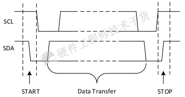 在SCL为高电平时,SDA下降沿。