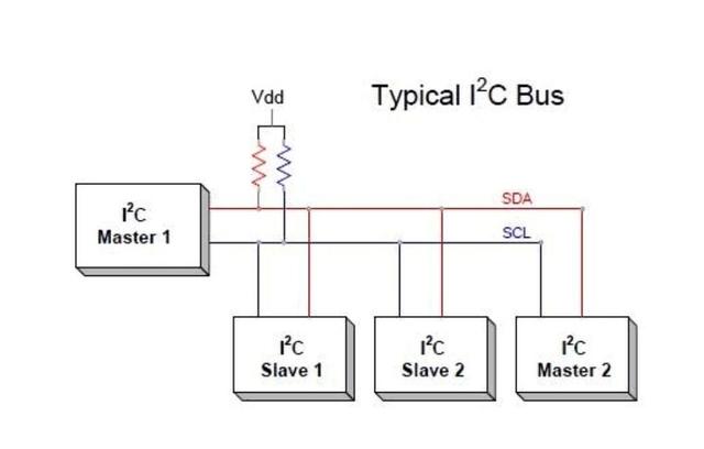 I2C 的一个显着特征是其两线接口,包括串行数据线 (SDA) 和串行时钟线 (SCL)。SDA线负责数据传输,而SCL线提供时钟信号,保证设备之间的同步。两条线路都是双向的,允许数据双向流动。它们是漏极开路的,这意味着设备可以将线路拉低(0 伏)以指示逻辑“0”,或让它浮高(高达指定电压,通常为 3.3V 或 5V)以指示逻辑“1”。上拉电阻是必要的,以确保当没有设备主动将线路拉低时,线路返回到高状态。